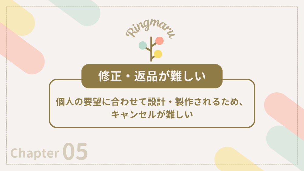この章では、フルオーダーメイド指輪の修正・返品についてご紹介します。