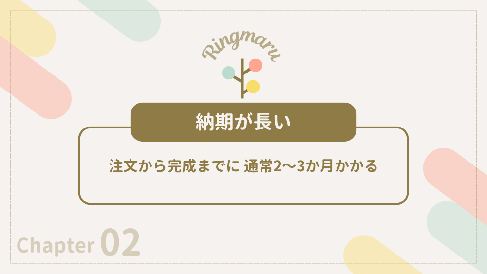 ここまで、フルオーダーメイドの結婚指輪には「価格が高い」「時間がかかる」「修正が難しい」など、現実的なデメリットがあることを正直にお伝えしてきました。